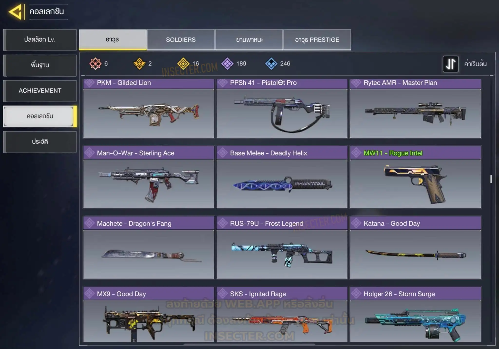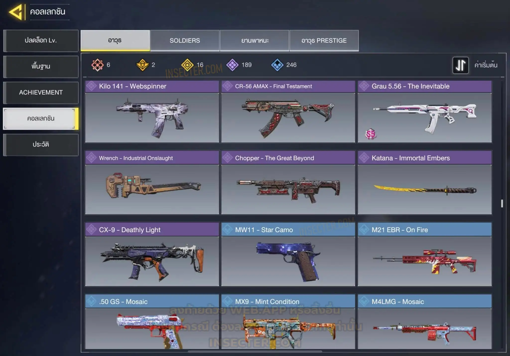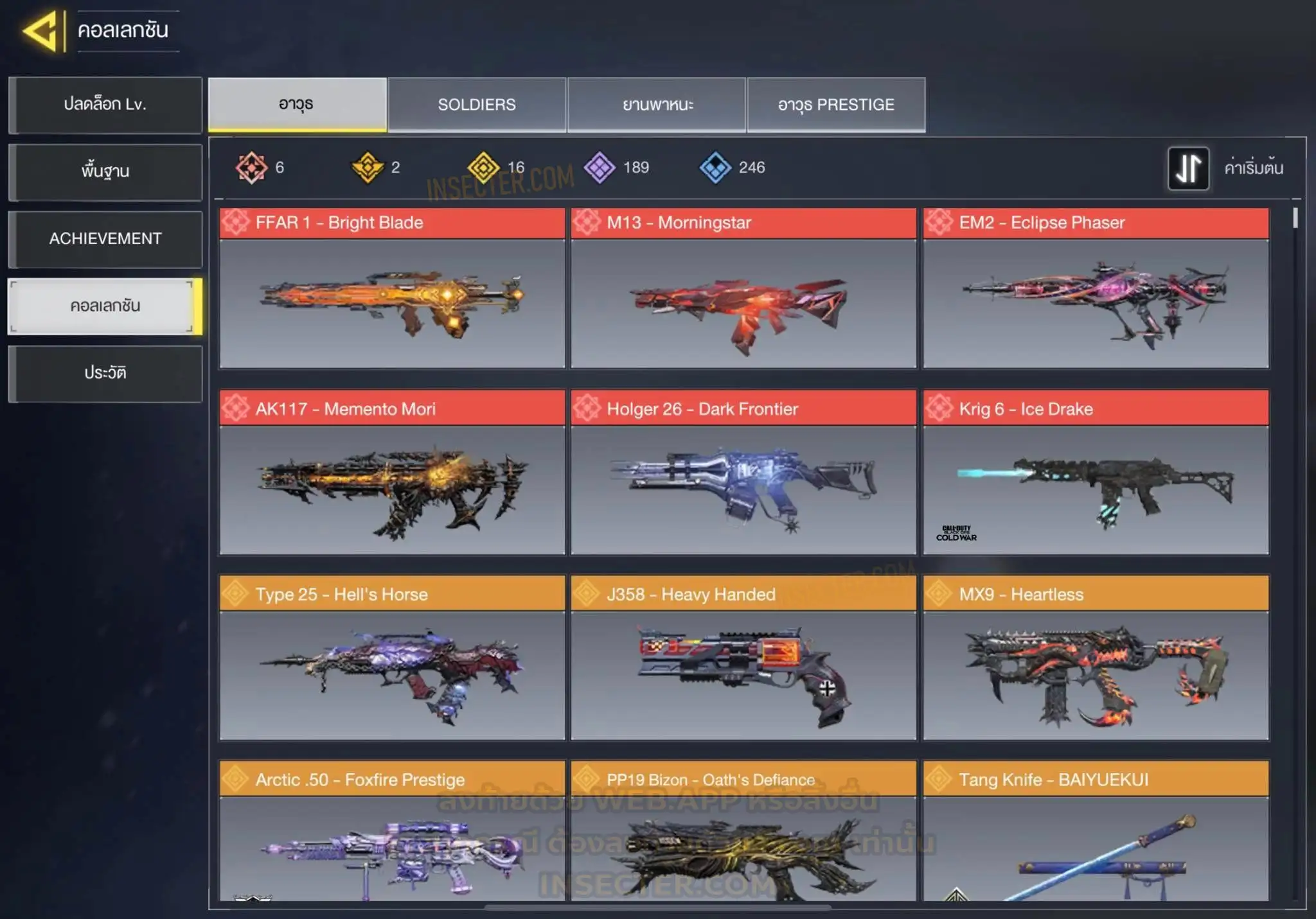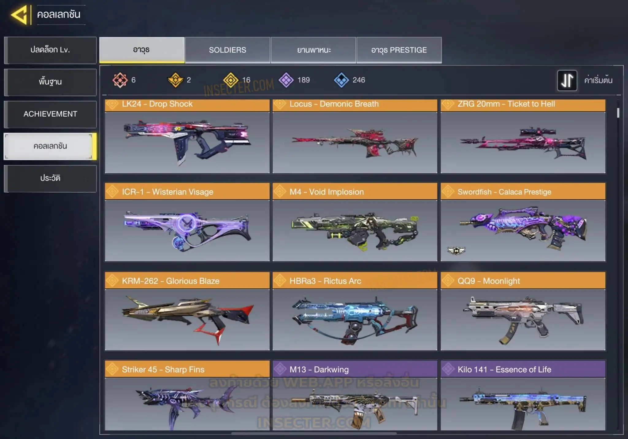 ข้อมูลย่อ : 🔴 𝙈𝙮𝙩𝙝𝙞𝙘 𝟲 - 𝗙𝗙𝗔𝗥 𝟭 - 𝗕𝗿𝗶𝗴𝗵𝘁 𝗕𝗹𝗮𝗱𝗲 𝗟𝘃.𝟰 𝗠𝟭𝟯 - 𝗠𝗼𝗿𝗻𝗶𝗻𝗴𝘀𝘁𝗮𝗿 𝗟𝘃.𝟰 𝗔𝗞𝟭𝟭𝟳 - 𝗠𝗲𝗺𝗲𝗻𝘁𝗼 𝗠𝗼𝗿𝗶 𝗟𝘃.𝟯 𝗞𝗿𝗶𝗴 𝟲 - 𝗜𝗰𝗲 𝗗𝗿𝗮𝗸𝗲 𝗟𝘃.𝟯 𝗛𝗼𝗹𝗴𝗲𝗿𝟮𝟲 - 𝗗𝗮𝗿𝗸 𝗙𝗿𝗼𝗻𝘁𝗶𝗲𝗿 𝗟𝘃.𝟯 𝗘𝗠𝟮 - 𝗘𝗰𝗹𝗶𝗽𝘀𝗲 𝗣𝗵𝗮𝘀𝗲𝗿 𝗟𝘃.𝟮 🟡 𝙇𝙚𝙜𝙚𝙣𝙙𝙖𝙧𝙮 𝟭𝟲 - 𝗧𝘆𝗽𝗲 𝟮𝟱 - 𝗛𝗲𝗹𝗹’𝘀 𝗛𝗼𝗿𝘀𝗲 , 𝗠𝗫𝟵 - 𝗛𝗲𝗮𝗿𝘁𝗹𝗲𝘀𝘀 , 𝗧𝗮𝗻𝗴 𝗞𝗻𝗶𝗳𝗲 - 𝗕𝗔𝗜𝗬𝗨𝗘𝗞𝗨𝗜 , 𝗔𝗿𝘁𝘁𝗶𝗰 .𝟱𝟬 - 𝗙𝗼𝘅𝗳𝗶𝗿𝗲 𝗣𝗿𝗲𝘀𝘁𝗶𝗴𝗲 , 𝗣𝗣𝟭𝟵 𝗕𝗶𝘇𝗼𝗻 - 𝗢𝗮𝘁𝗵’𝘀 𝗗𝗲𝗳𝗶𝗮𝗻𝗰𝗲 , 𝗝𝟯𝟱𝟴 - 𝗛𝗲𝗮𝘃𝘆 𝗛𝗮𝗻𝗱𝗲𝗱 , 𝗟𝗞𝟮𝟰 - 𝗗𝗿𝗼𝗽 𝗦𝗵𝗼𝗰𝗸 , 𝗟𝗼𝗰𝘂𝘀 - 𝗗𝗲𝗺𝗼𝗻𝗶𝗰 𝗕𝗿𝗲𝗮𝘁𝗵 , 𝗭𝗥𝗚 𝟮𝟬𝗺𝗺 - 𝗧𝗶𝗰𝗸𝗲𝘁 𝘁𝗼 𝗛𝗲𝗹𝗹 , 𝗜𝗖𝗥-𝟭 - 𝗪𝗶𝘀𝘁𝗲𝗿𝗶𝗮𝗻 𝗩𝗶𝘀𝗮𝗴𝗲 , 𝗠𝟰 - 𝗩𝗼𝗹𝗱 𝗜𝗺𝗽𝗹𝗼𝘀𝗶𝗼𝗻 , 𝗦𝘄𝗼𝗿𝗱𝗳𝗶𝘀𝗵 - 𝗖𝗮𝗹𝗮𝗰𝗲 𝗣𝗿𝗲𝘀𝘁𝗶𝗴𝗲 , 𝗞𝗥𝗠-𝟮𝟲 - 𝗚𝗹𝗼𝗿𝗶𝗼𝘂𝘀 𝗕𝗹𝗮𝘇𝗲 , 𝗛𝗕𝗥𝗮𝟯 - 𝗥𝗶𝗰𝘁𝘂𝘀 𝗔𝗿𝗰 , 𝗤𝗤𝟵 - 𝗠𝗼𝗼𝗻𝗹𝗶𝗴𝗵𝘁 , 𝗦𝘁𝗿𝗶𝗸𝗲𝗿 𝟰𝟱 - 𝗦𝗵𝗮𝗿𝗽 𝗙𝗶𝗻𝘀 🔴 𝗠𝘆𝘁𝗵𝗶𝗰 ( 𝗦𝗼𝗹𝗱𝗶𝗲𝗿𝘀 ) - 𝗧𝗲𝗺𝗽𝗹𝗮𝗿 - 𝗖𝗼𝘂𝘁𝗲𝗮𝘂’𝘀 𝗢𝗮𝘁𝗵 𝗟𝘃.𝟳 🟣 - ตัวละคร 𝟴𝟳 🎮 🟣 - สกินปืu 𝟭𝟴𝟵 🎮
