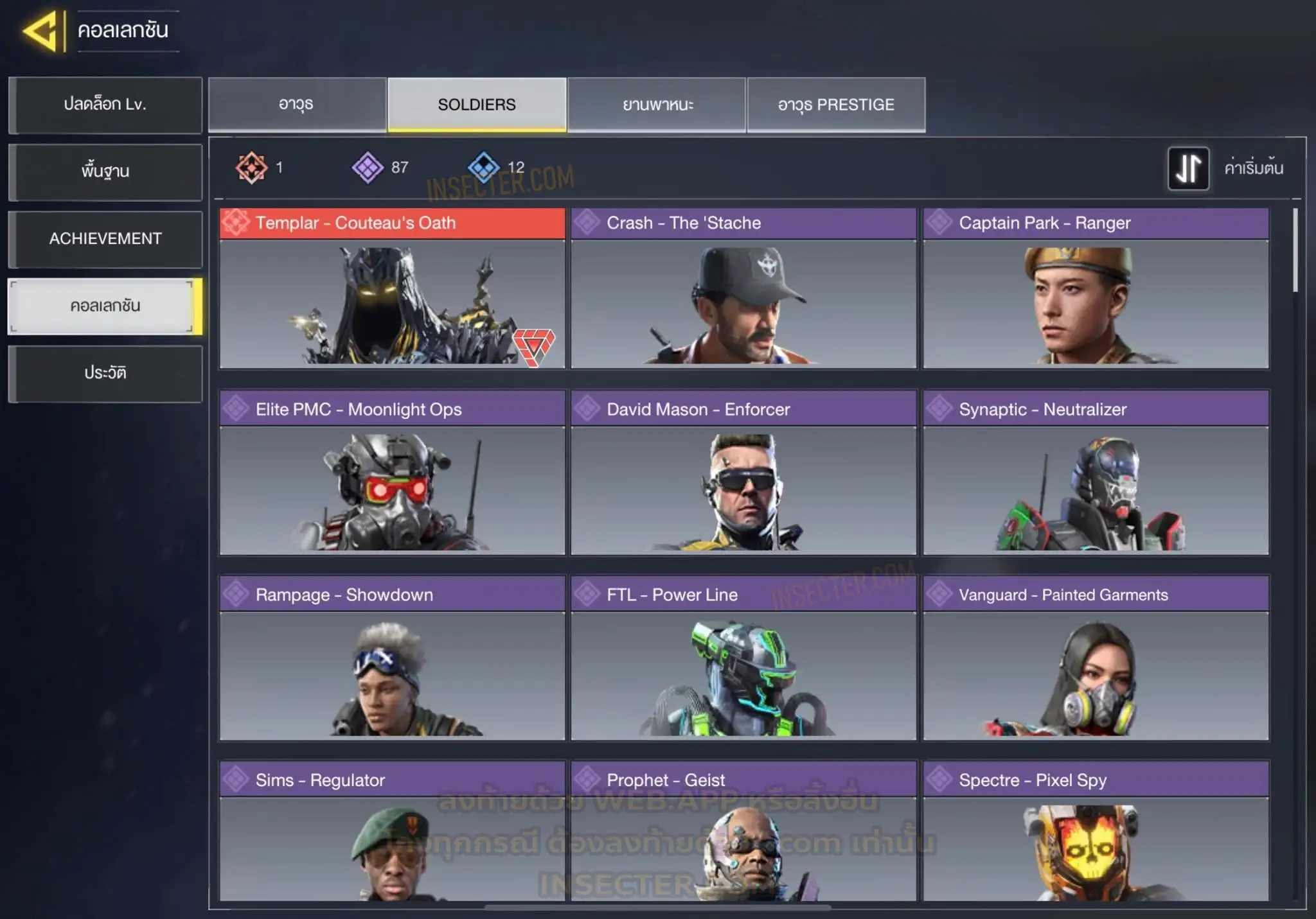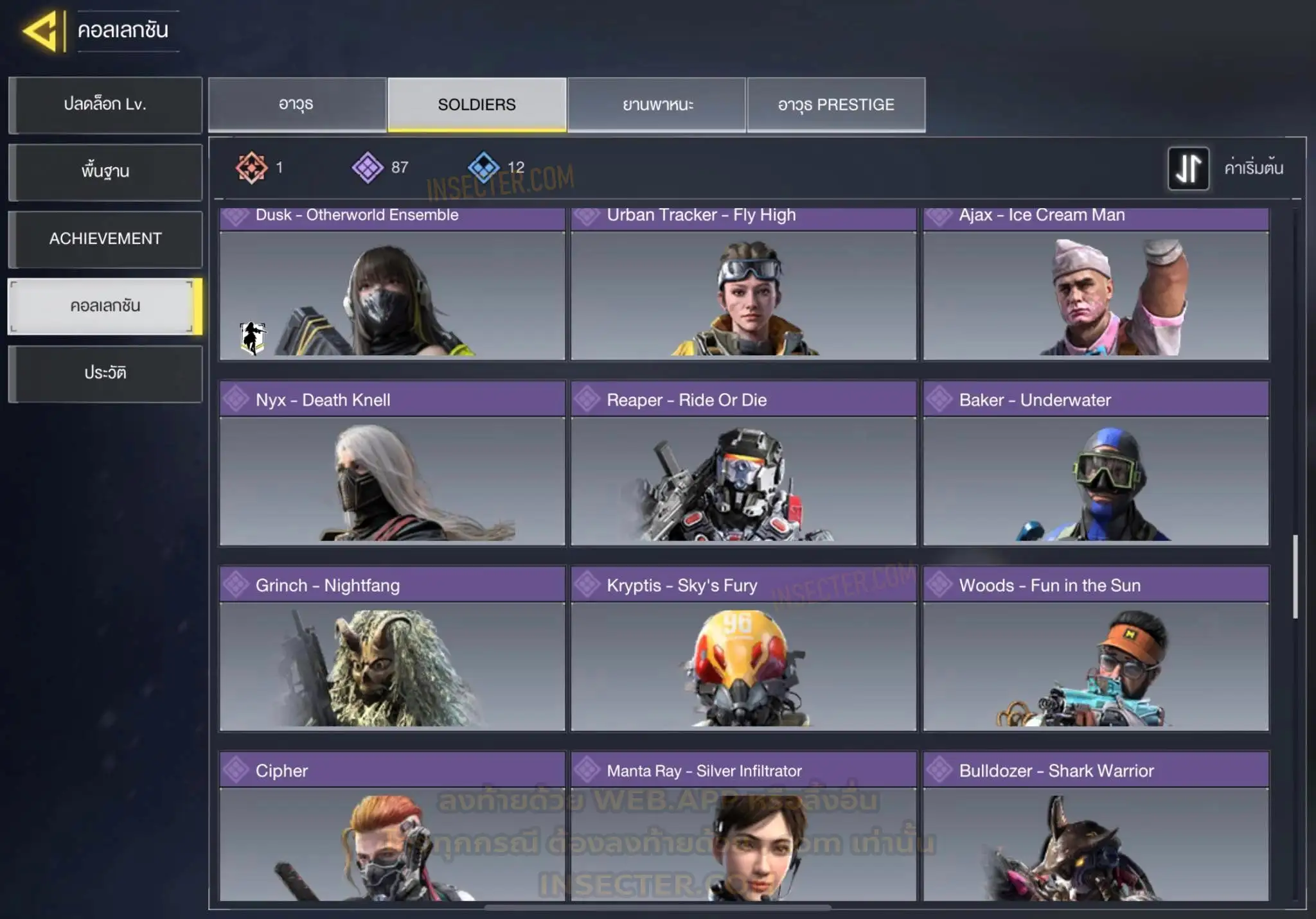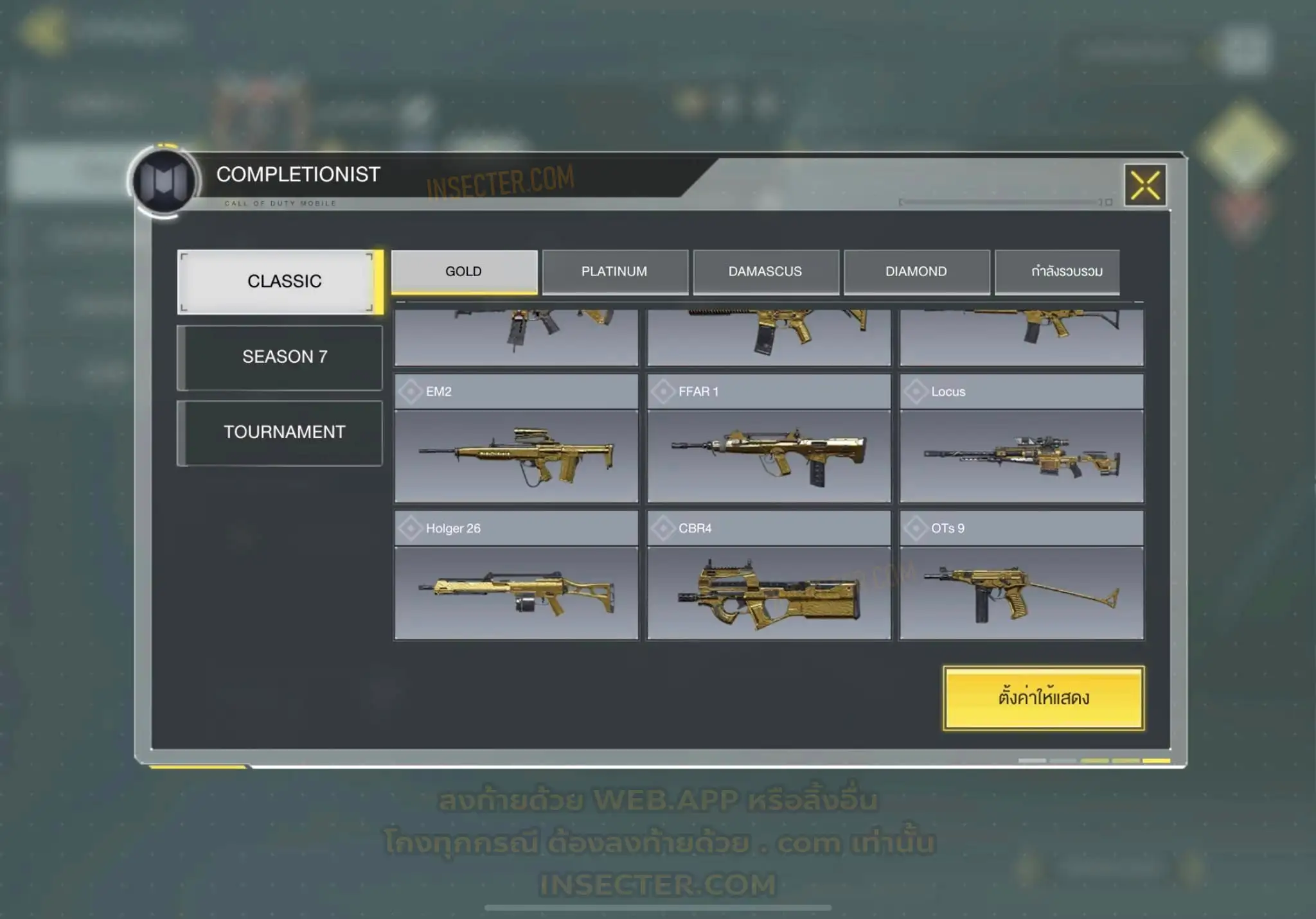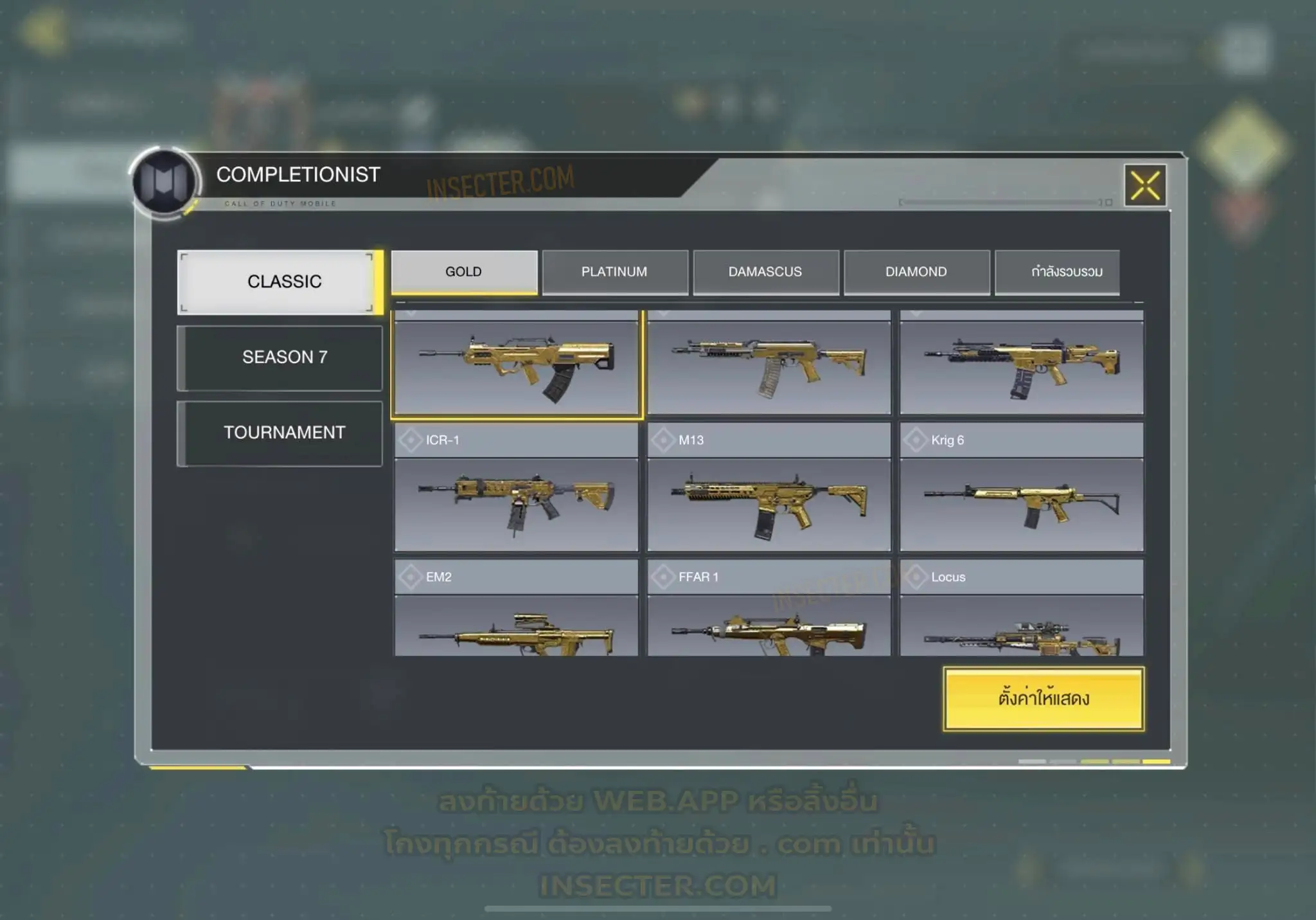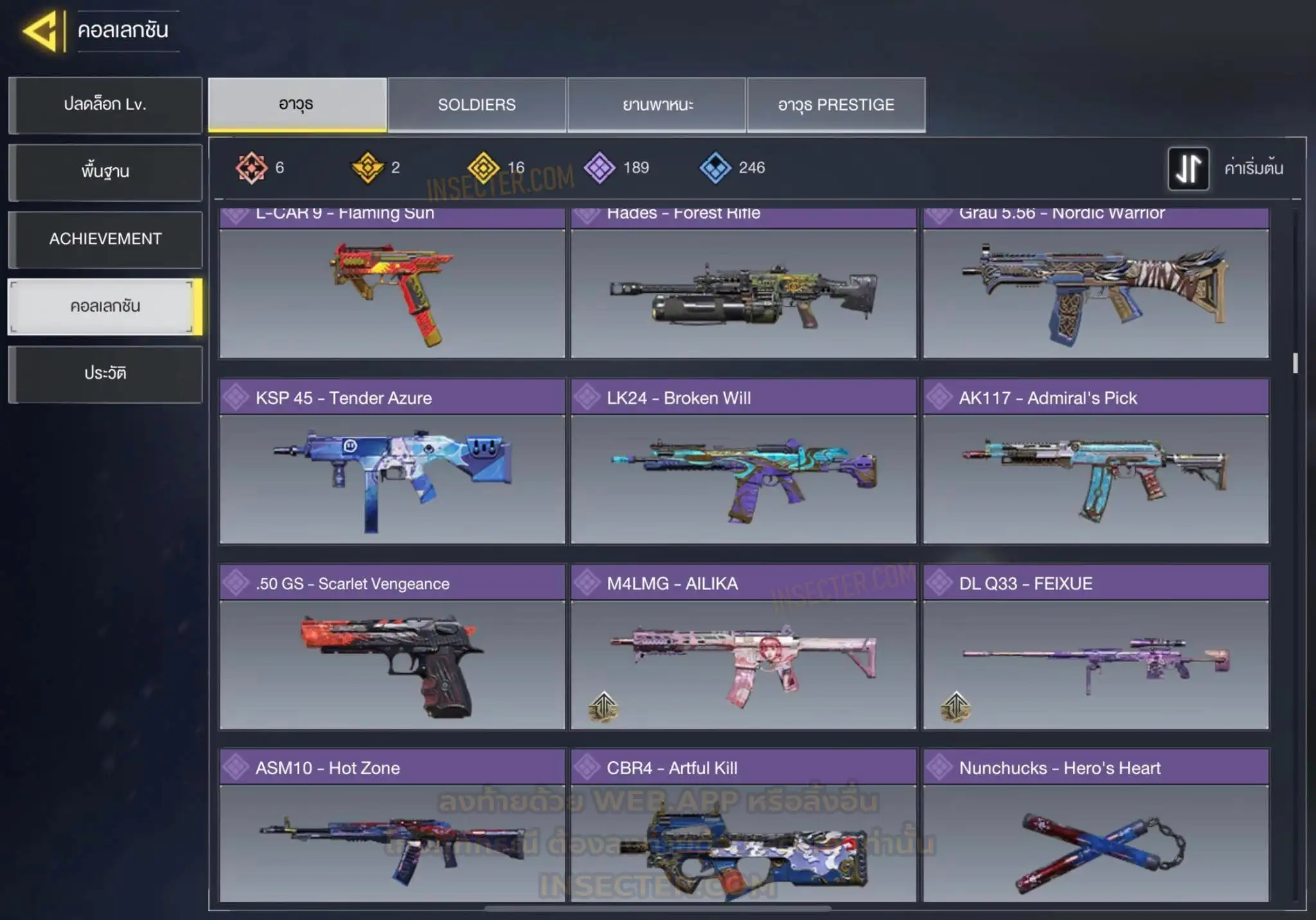 ข้อมูลย่อ : 🔴 𝙈𝙮𝙩𝙝𝙞𝙘 𝟲 - 𝗙𝗙𝗔𝗥 𝟭 - 𝗕𝗿𝗶𝗴𝗵𝘁 𝗕𝗹𝗮𝗱𝗲 𝗟𝘃.𝟰 𝗠𝟭𝟯 - 𝗠𝗼𝗿𝗻𝗶𝗻𝗴𝘀𝘁𝗮𝗿 𝗟𝘃.𝟰 𝗔𝗞𝟭𝟭𝟳 - 𝗠𝗲𝗺𝗲𝗻𝘁𝗼 𝗠𝗼𝗿𝗶 𝗟𝘃.𝟯 𝗞𝗿𝗶𝗴 𝟲 - 𝗜𝗰𝗲 𝗗𝗿𝗮𝗸𝗲 𝗟𝘃.𝟯 𝗛𝗼𝗹𝗴𝗲𝗿𝟮𝟲 - 𝗗𝗮𝗿𝗸 𝗙𝗿𝗼𝗻𝘁𝗶𝗲𝗿 𝗟𝘃.𝟯 𝗘𝗠𝟮 - 𝗘𝗰𝗹𝗶𝗽𝘀𝗲 𝗣𝗵𝗮𝘀𝗲𝗿 𝗟𝘃.𝟮 🟡 𝙇𝙚𝙜𝙚𝙣𝙙𝙖𝙧𝙮 𝟭𝟲 - 𝗧𝘆𝗽𝗲 𝟮𝟱 - 𝗛𝗲𝗹𝗹’𝘀 𝗛𝗼𝗿𝘀𝗲 , 𝗠𝗫𝟵 - 𝗛𝗲𝗮𝗿𝘁𝗹𝗲𝘀𝘀 , 𝗧𝗮𝗻𝗴 𝗞𝗻𝗶𝗳𝗲 - 𝗕𝗔𝗜𝗬𝗨𝗘𝗞𝗨𝗜 , 𝗔𝗿𝘁𝘁𝗶𝗰 .𝟱𝟬 - 𝗙𝗼𝘅𝗳𝗶𝗿𝗲 𝗣𝗿𝗲𝘀𝘁𝗶𝗴𝗲 , 𝗣𝗣𝟭𝟵 𝗕𝗶𝘇𝗼𝗻 - 𝗢𝗮𝘁𝗵’𝘀 𝗗𝗲𝗳𝗶𝗮𝗻𝗰𝗲 , 𝗝𝟯𝟱𝟴 - 𝗛𝗲𝗮𝘃𝘆 𝗛𝗮𝗻𝗱𝗲𝗱 , 𝗟𝗞𝟮𝟰 - 𝗗𝗿𝗼𝗽 𝗦𝗵𝗼𝗰𝗸 , 𝗟𝗼𝗰𝘂𝘀 - 𝗗𝗲𝗺𝗼𝗻𝗶𝗰 𝗕𝗿𝗲𝗮𝘁𝗵 , 𝗭𝗥𝗚 𝟮𝟬𝗺𝗺 - 𝗧𝗶𝗰𝗸𝗲𝘁 𝘁𝗼 𝗛𝗲𝗹𝗹 , 𝗜𝗖𝗥-𝟭 - 𝗪𝗶𝘀𝘁𝗲𝗿𝗶𝗮𝗻 𝗩𝗶𝘀𝗮𝗴𝗲 , 𝗠𝟰 - 𝗩𝗼𝗹𝗱 𝗜𝗺𝗽𝗹𝗼𝘀𝗶𝗼𝗻 , 𝗦𝘄𝗼𝗿𝗱𝗳𝗶𝘀𝗵 - 𝗖𝗮𝗹𝗮𝗰𝗲 𝗣𝗿𝗲𝘀𝘁𝗶𝗴𝗲 , 𝗞𝗥𝗠-𝟮𝟲 - 𝗚𝗹𝗼𝗿𝗶𝗼𝘂𝘀 𝗕𝗹𝗮𝘇𝗲 , 𝗛𝗕𝗥𝗮𝟯 - 𝗥𝗶𝗰𝘁𝘂𝘀 𝗔𝗿𝗰 , 𝗤𝗤𝟵 - 𝗠𝗼𝗼𝗻𝗹𝗶𝗴𝗵𝘁 , 𝗦𝘁𝗿𝗶𝗸𝗲𝗿 𝟰𝟱 - 𝗦𝗵𝗮𝗿𝗽 𝗙𝗶𝗻𝘀 🔴 𝗠𝘆𝘁𝗵𝗶𝗰 ( 𝗦𝗼𝗹𝗱𝗶𝗲𝗿𝘀 ) - 𝗧𝗲𝗺𝗽𝗹𝗮𝗿 - 𝗖𝗼𝘂𝘁𝗲𝗮𝘂’𝘀 𝗢𝗮𝘁𝗵 𝗟𝘃.𝟳 🟣 - ตัวละคร 𝟴𝟳 🎮 🟣 - สกินปืu 𝟭𝟴𝟵 🎮