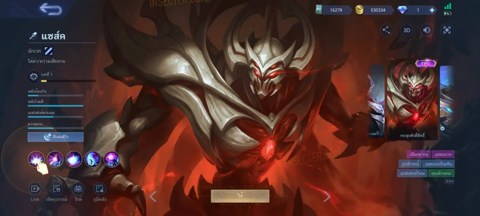 ข้อมูลย่อ : Hero 122 Skin 406 เอ็มเบลตัน/กรอบรูป Zodiac !!! วาร์ปแรร์ผนึกเวทย์สายฟ้า Epic ถาวร !!! วาร์ปแรร์ดอกผนึกนิรันดร์ Epic ถาวร !!! ตั๋ว 16,000 ทอง 530,000 แต้มราศี 61 (ครบ 100 แลก Skin Zodiac 1 ตัว) แก่นพลังเวท 114 (ครบ 200 แลก Skin Legend 1 ตัว) Legend 2 ตัว Collector 1 ตัว อนิเมะ 26 ตัว Zodiac 11/13 ตัว !!! M2/M3/M4/Prime 4 ตัว Epic แรร์/ธรรมดา 21 ตัว ถ่ายมาบางส่วนยังไม่รวม Special/Ster/MSC/Christmas/Valentine/Halloween/AS/515/Create/Season คอลเลคชั่นอื่นๆ