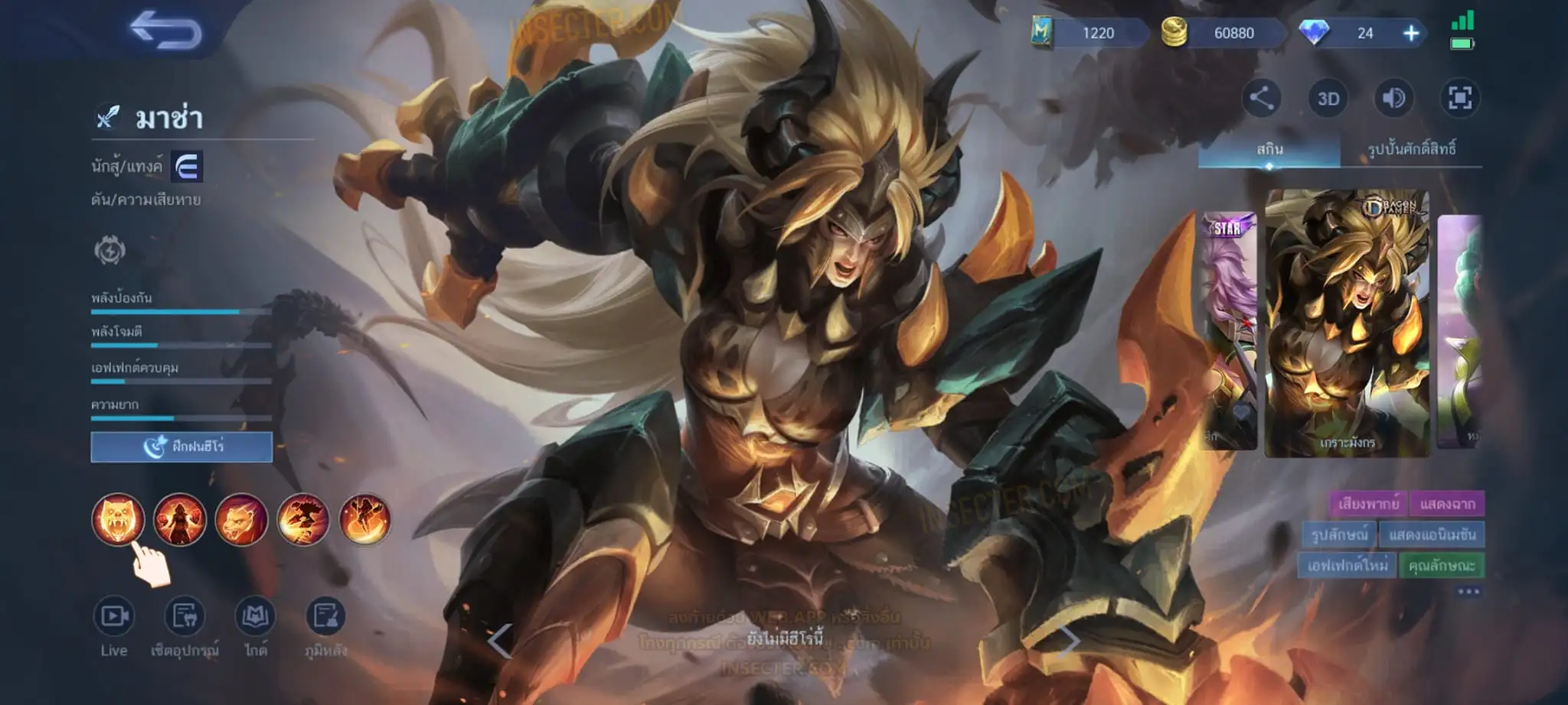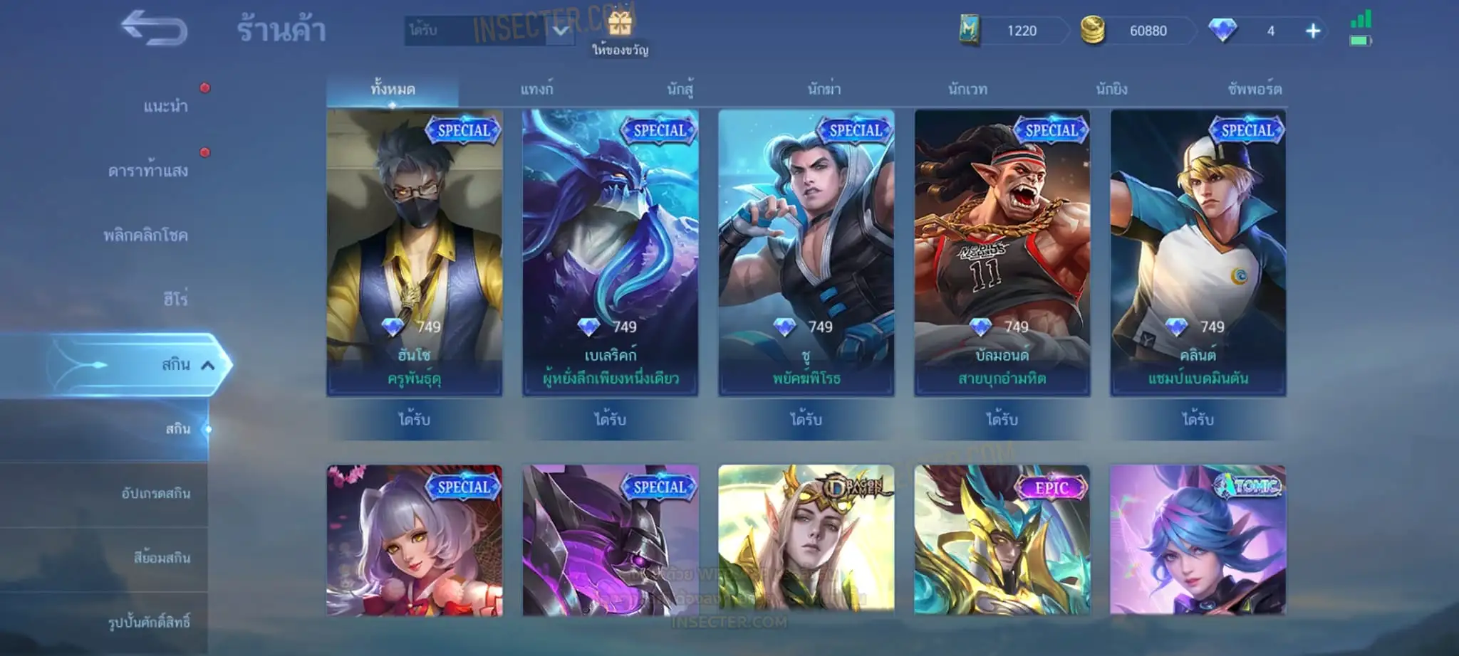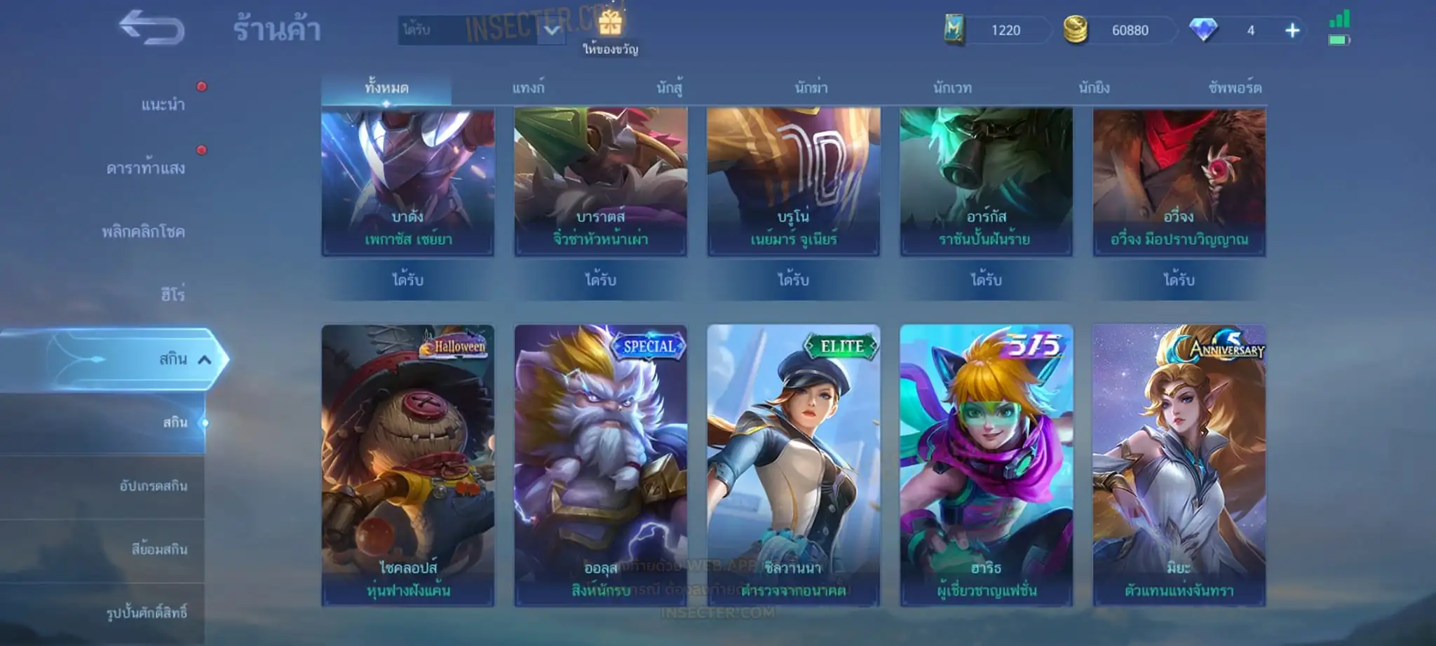 ข้อมูลย่อ : Hero 55 Skin 94 เอ็มเบล 90%/วาร์ปแรร์มือปราบ ถาวร ครบเซ็ต !!! 1.อวีจง Exorcists 2.มิยะ Atomic 3.จอห์น Epic แรร์ 4.บาดัง เซย์ยา 5.บรูโน่ เนย์มาร์ ถ่ายมาบางส่วนไม่รวม Skin Season/Ster คอลเลคชั่นอื่นๆ