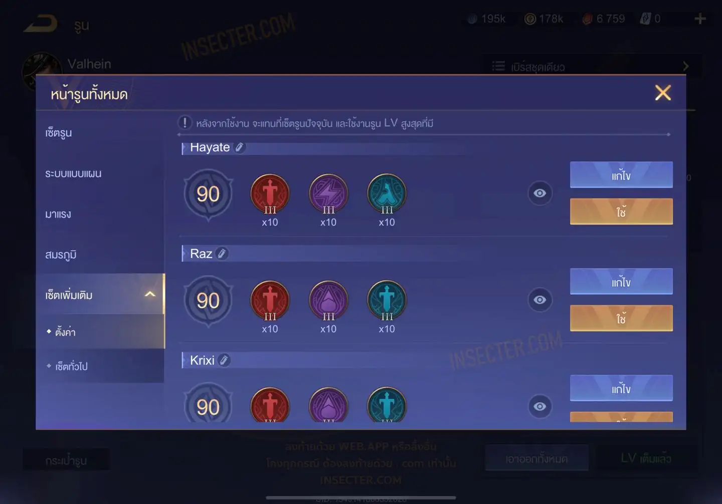 ข้อมูลย่อ : HERO 115 SKIN 395 สกินแรร์อนิเมะครบ รูน 30 หน้า