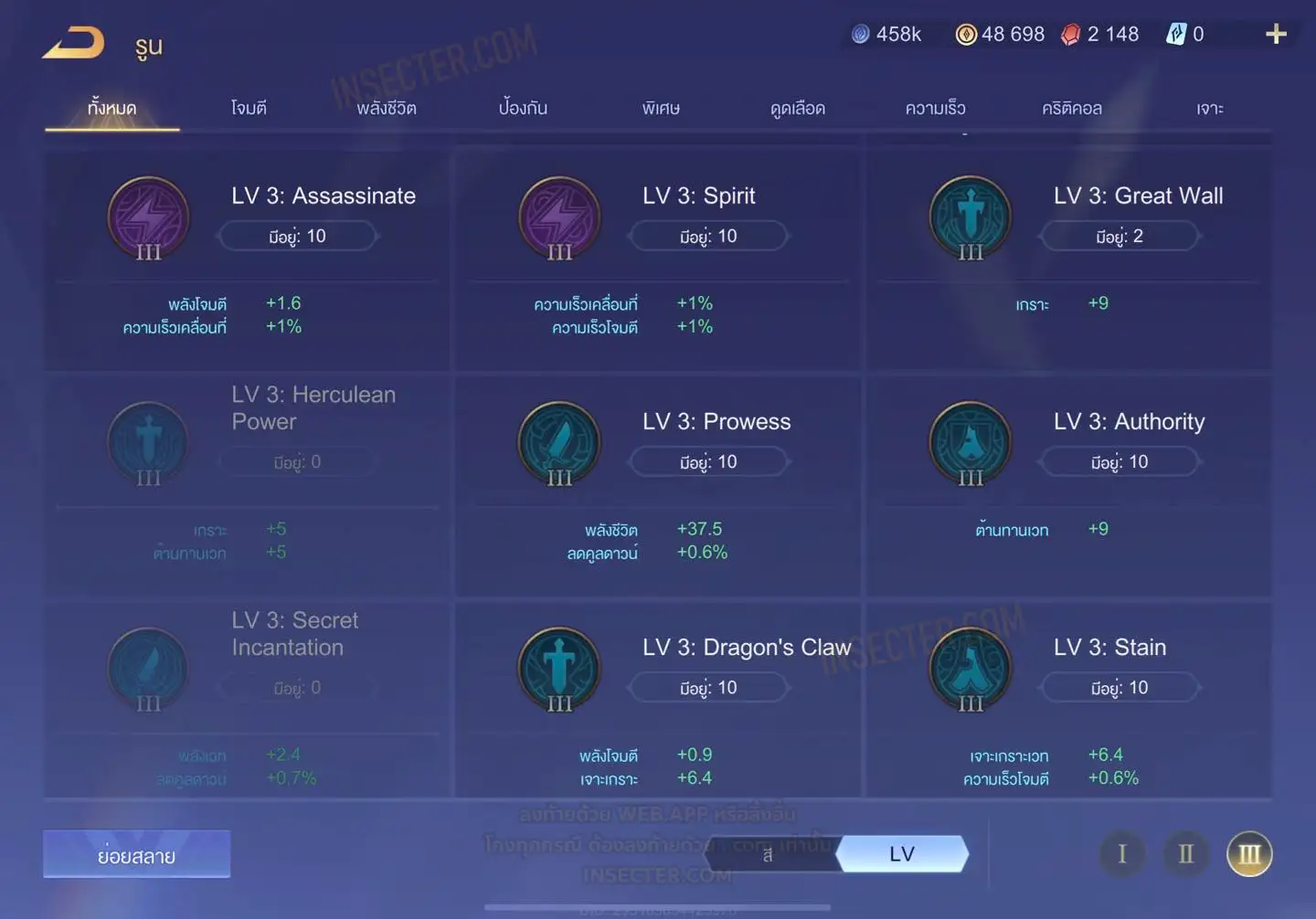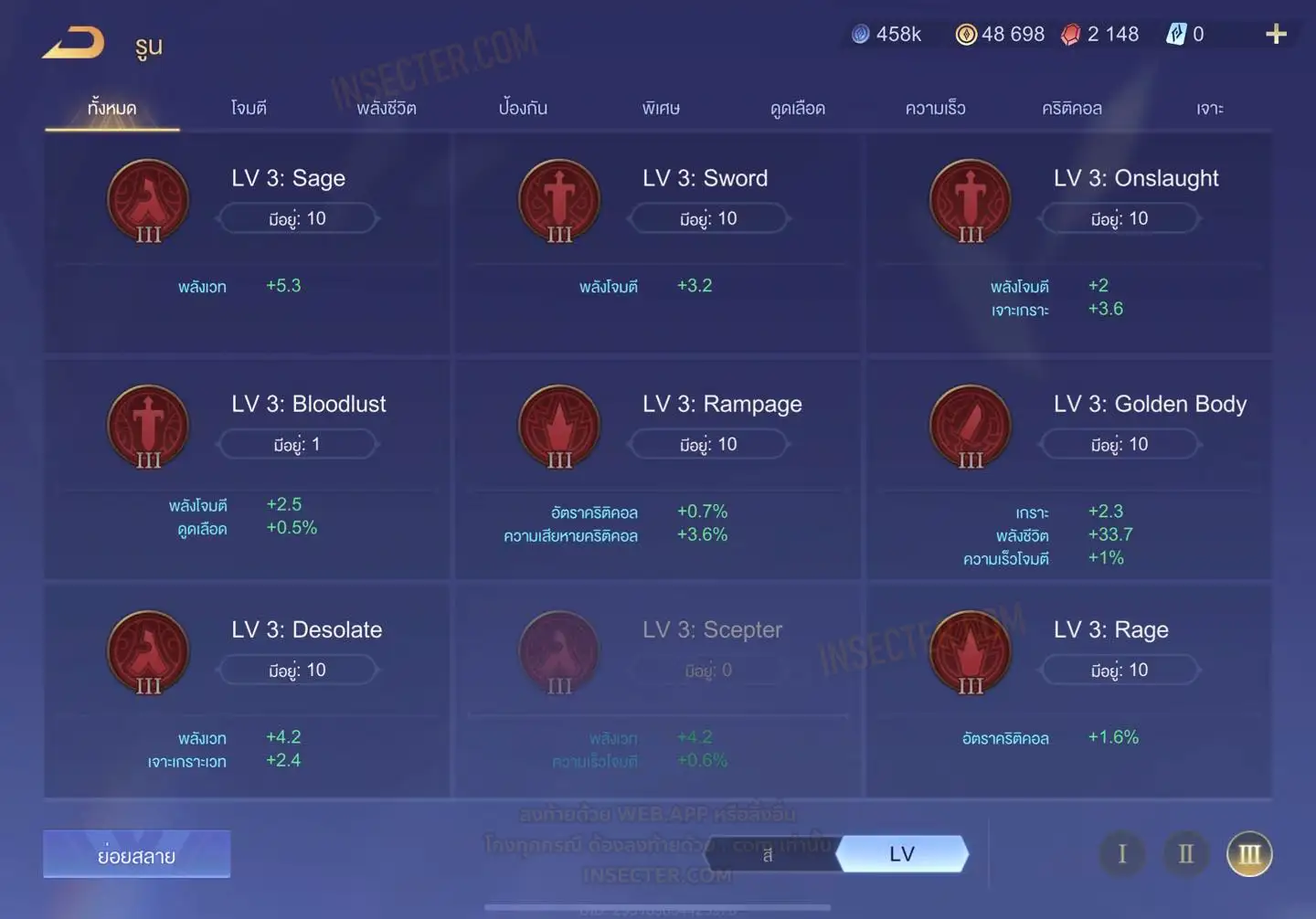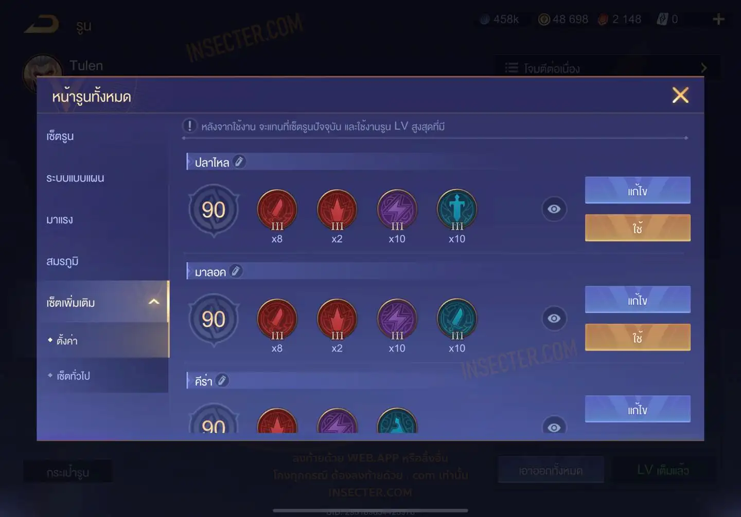 ข้อมูลย่อ : HERO 108 SKIN 284 สกินแรร์ดาบพิฆาตอสูร รูน 24 หน้า