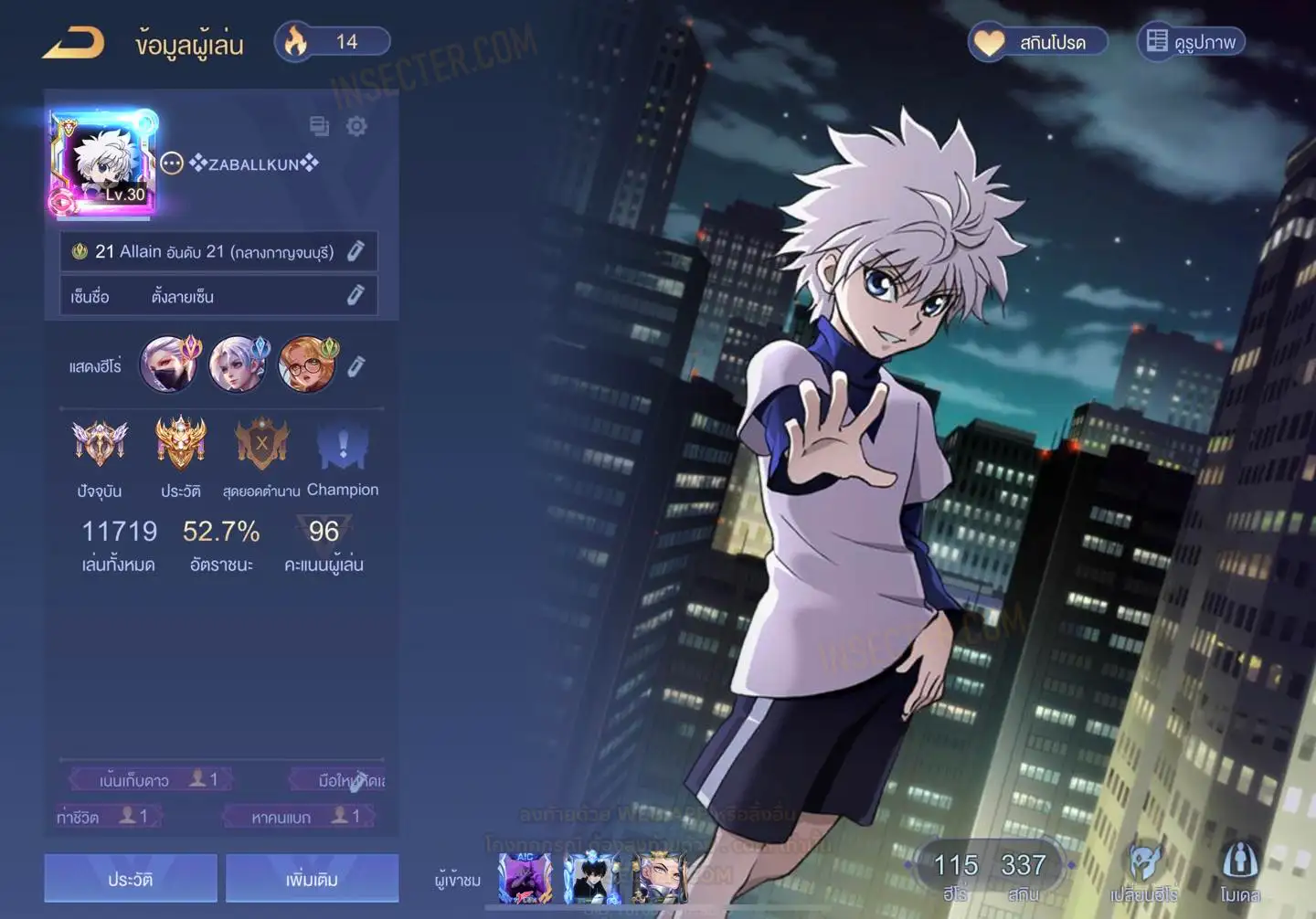 ข้อมูลย่อ : HERO 115 SKIN 337 สกินแรร์ Hunterxhunter รูน 30 หน้า